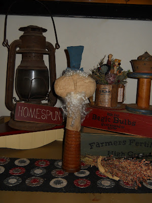 Well Miss Brenda, so good to hear you are creating again. Eyes.... I love the stitches and painted ones on dolls, however buttons are so much easier for me. I like the patches and buttons on the extreme prim babies. I love Americana but tend to look for items I can leave out much longer. I am working on fall and Christmas as my only show is in Sept. and those items are what my customers look for. I saw Morning Glory stuffing back in our Walmart over the weekend. Yah! Can't wait to see your Uncle Sam finished. Have a good afternoon.